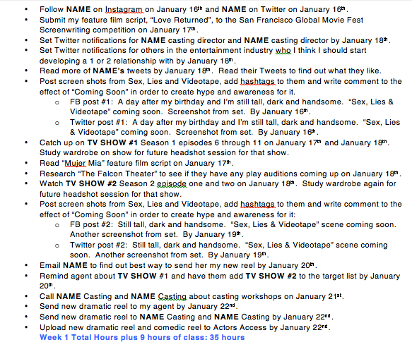 **I’m targeting different TV shows, show runners, producers and casting directors with tangible results