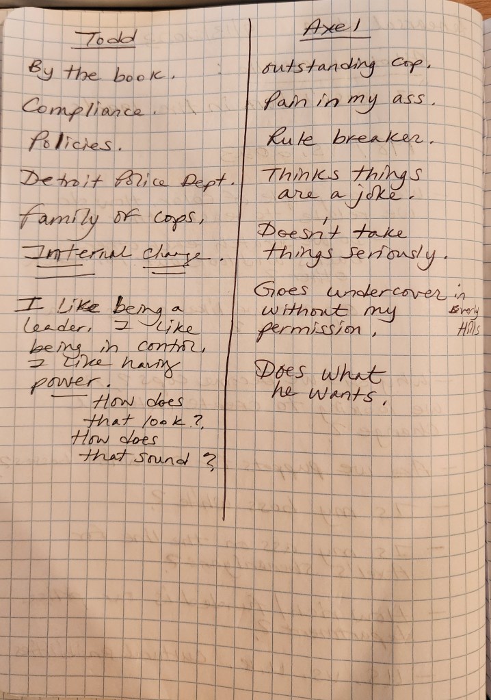 Some of my notes from the “Beverly Hills Cop 2” rehearsals: