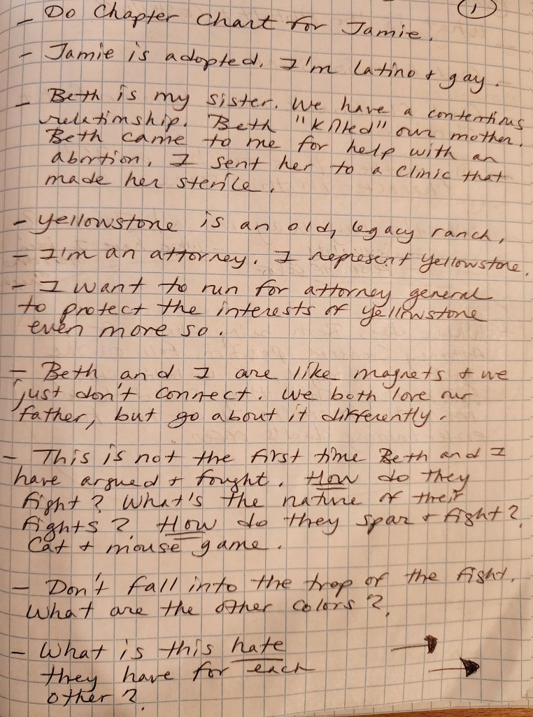 In Part 2, I continue going through the first 40 percent by sharing a few handwritten notes I took during my rehearsals! Think of it as a visual, inside look into my first 40 percent of the rehearsal process (notes aka the secret sauce I am using to create and make sense of what is going on before my scene partners and I get our scenes up on their feet.) As I mentioned last week, the first 40 percent of the time you have to work on something is devoted to research, gathering information, asking questions, and writing things down for further investigation and research. And please know that for each question or note that I wrote down in one rehearsal, I came back with answers and ideas for the next one. My scene partners did the same with their own questions and notes. (Also, a shout out to my scene partners for inspiring some of these questions and notes you’ll see below.) Also, there may be SPOILERS if you haven’t seen “Yellowstone” or “Beverly Hills Cop 2”. See you all next week where I will share my experiences with the second 40 percent of the rehearsal process. Keep reading below 🙂